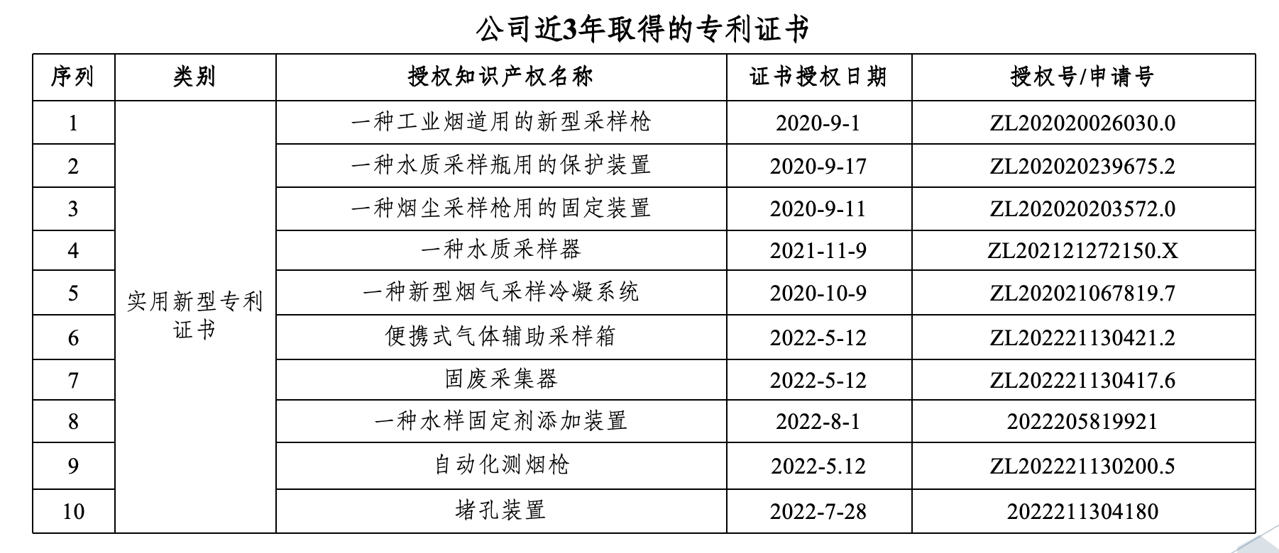 环境方面专利证书
